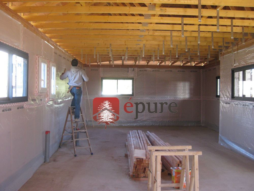 - isolation:laine de bois 140 + 60mm en murs, TMS 10cm en sol sous chape, ouate de cellulose en plafond 45cm